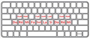 Grâce au clavier virtuel ci-dessous vous pourrez, vous aussi, vous amuser à créer LA mélodie qui donnera naissance à votre future identité sonore.